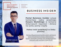 Portal Buisness Insider cytuje komentarz radcy prawnego Kacpra Skalskiego szefa zespołu prawa energetycznego Kancelarii w…