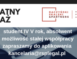 Zapraszamy do odbycia płatnego stażu w Kancelarii Raczyński Skalski & Partners spp: studentów IV, V roku…