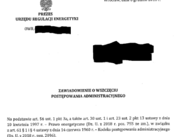 W ostatnich dniach Prezes URE rozsyła do przedsiębiorców kolejną partię zawiadomień o wszczęciu postępowania administracyjnego…