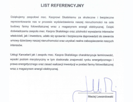 Nasza Kancelaria doprowadziła do zawarcia umowy dzierżawy nieruchomości pod budowę elektrowni fotowoltaicznej. Doradzaliśmy prawnie właścicielom…