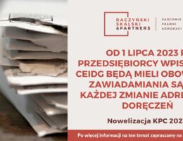 Od 1 lipca 2023 r. wszyscy przedsiębiorcy wpisani do Centralnej Ewidencji i Informacji o Działalności Gospodarczej będą mieli obowiązek zawiadamiania sądu o każdej zmianie adresu do doręczeń.
